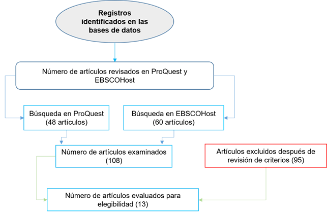 information was obtained from the ProQuest and EBSCOHost databases from 2020 to 2022 in Spanish. The total