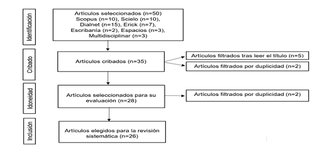 Dialnet y Eric de los cuales se obtuvieron 50 artículos en total,