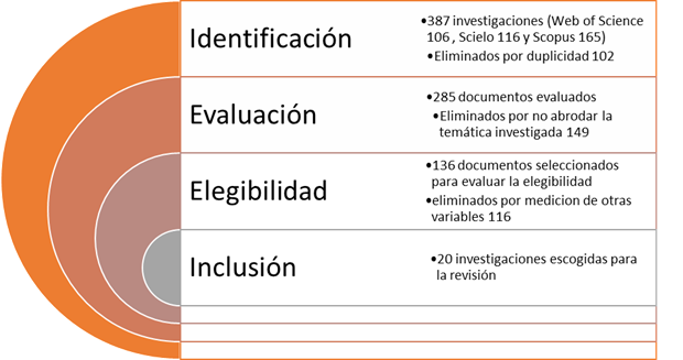 las bases: Web of Science, Scielo y Scopus, seleccionándose 20 artículos. Para