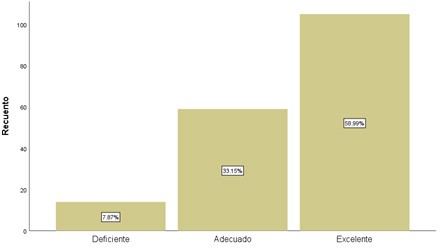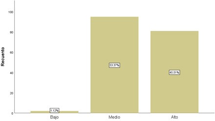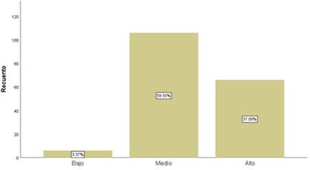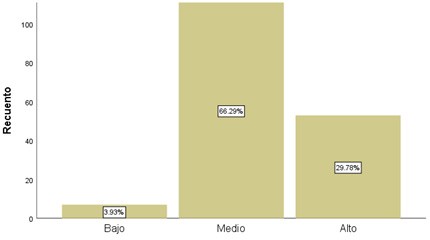 Analizados los niveles de acuerdo con cada dimensión descrita en el instrumento, fue meritorio determinar el nivel general obtenido por los partícipes del estudio el cual se describe en el gráfico 4.