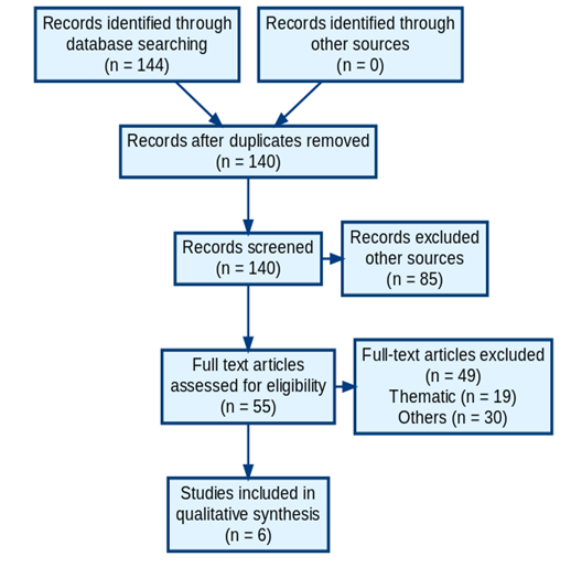 (PRISMA), a causa de su aplicación se lograron obtener 6 documentos de bases de